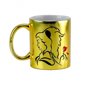 CANECA DE PORCELANA METALIZADA DOURADA